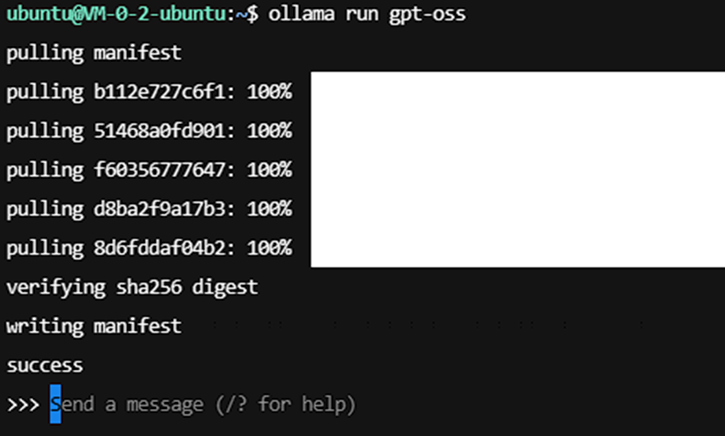 直接运行以下命令,Ollama 会自动拉取 gpt-oss 模型(默认为 20B 版本):