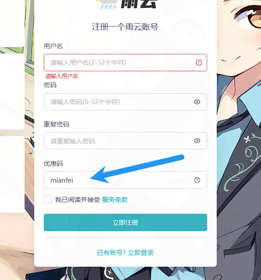 或在注册时填写优惠码:mianfei