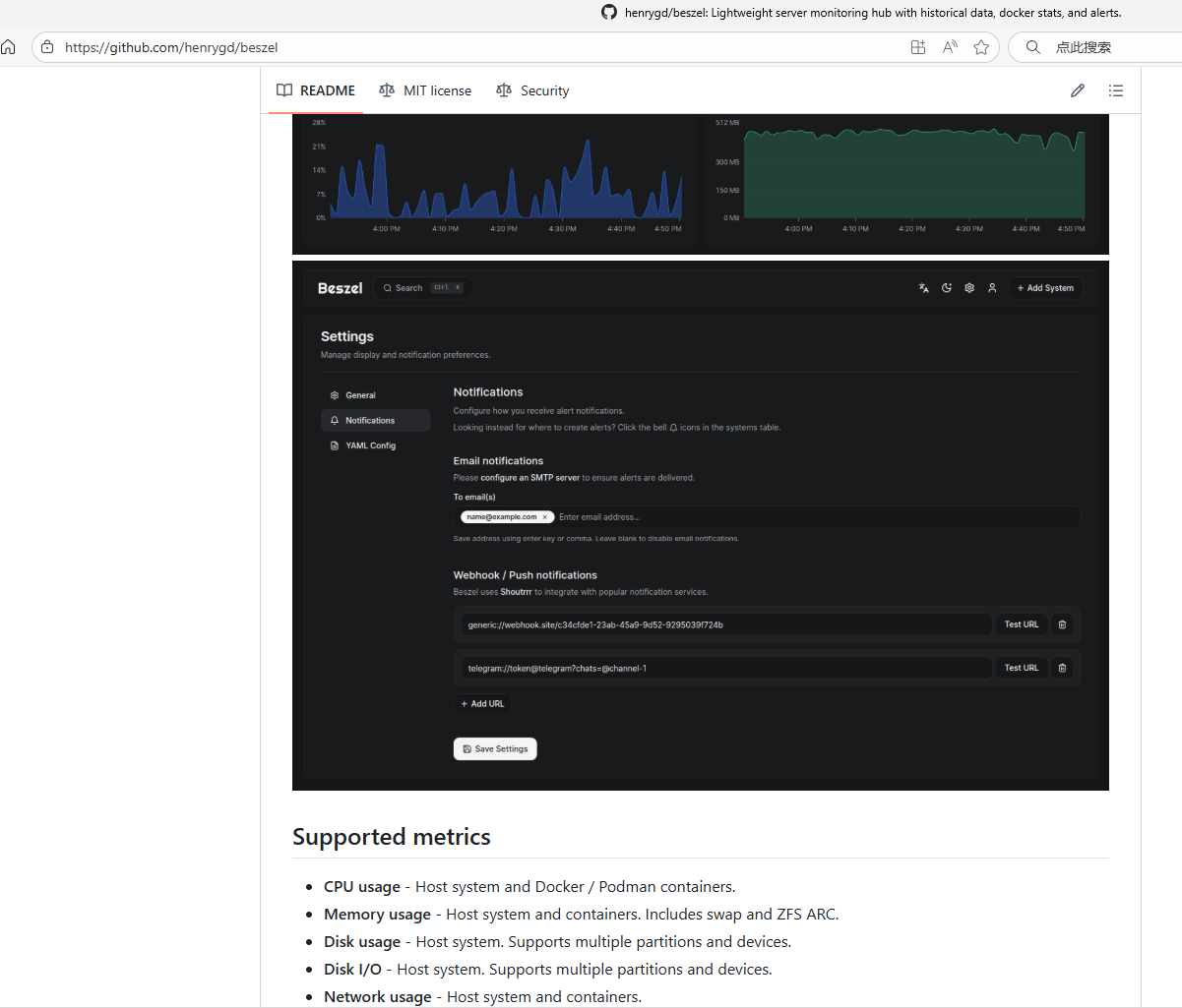 Beszel 支持监控以下指标: