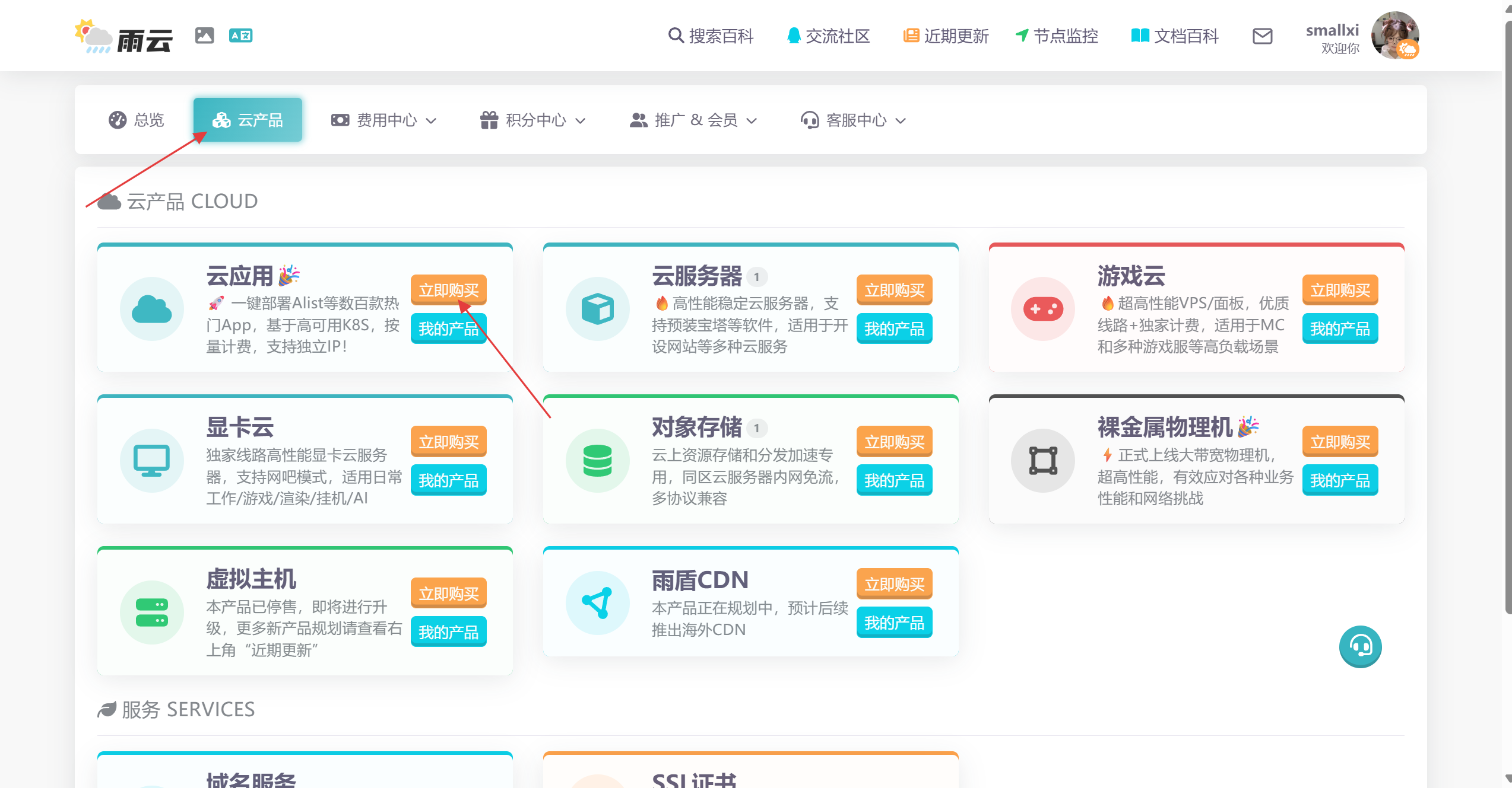 登录雨云账号,进入控制台 登录雨云账号,进入控制台