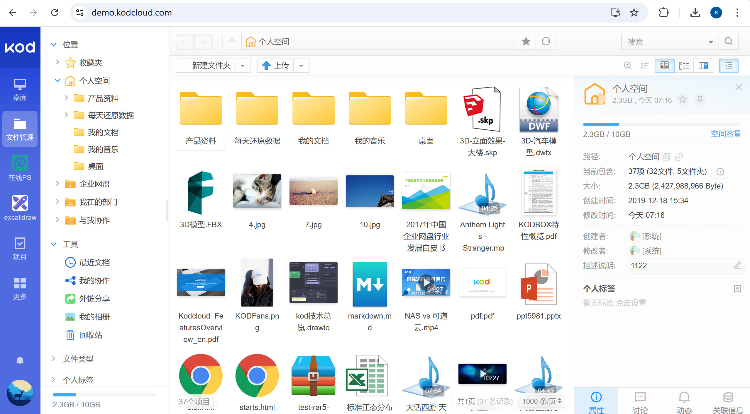可道云(KodExplorer / KodCloud) 是一款功能强大的私有化网盘 + 在线文档管理系统。
