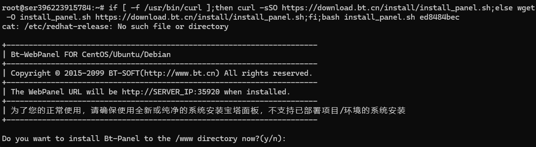 if [ -f /usr/bin/curl ];then curl -sSO https://download.bt.cn/install/install_panel.sh;else wget -O install_panel.sh https://download.bt.cn/install/install_panel.sh;fi;bash install_panel.sh ed8484bec