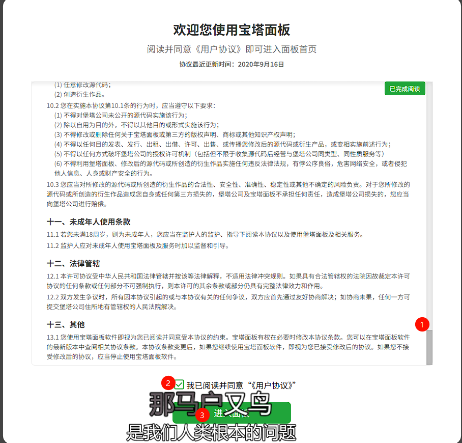 滑到最后,同意条款,进入面板