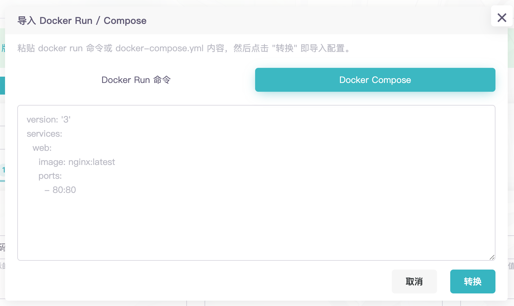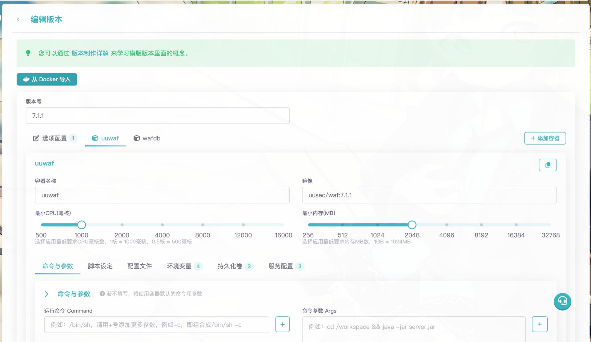 通过在编辑版本中的“从 Docker 导入”功能,可以快速转换成云应用容器。