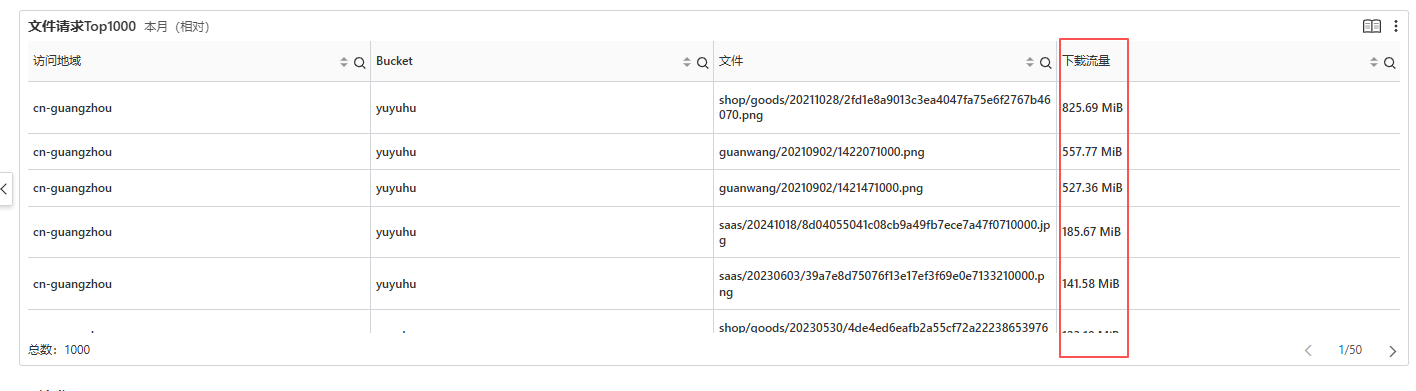 参考阿里云,下载流量 top 排序。
