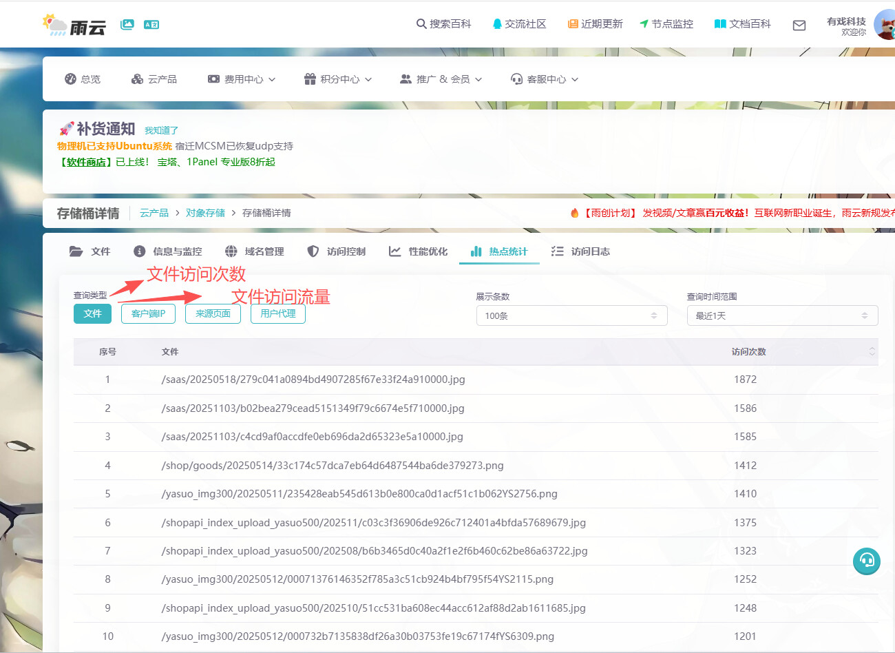 对象存储 希望增加 文件访问流量 的 热点统计功能