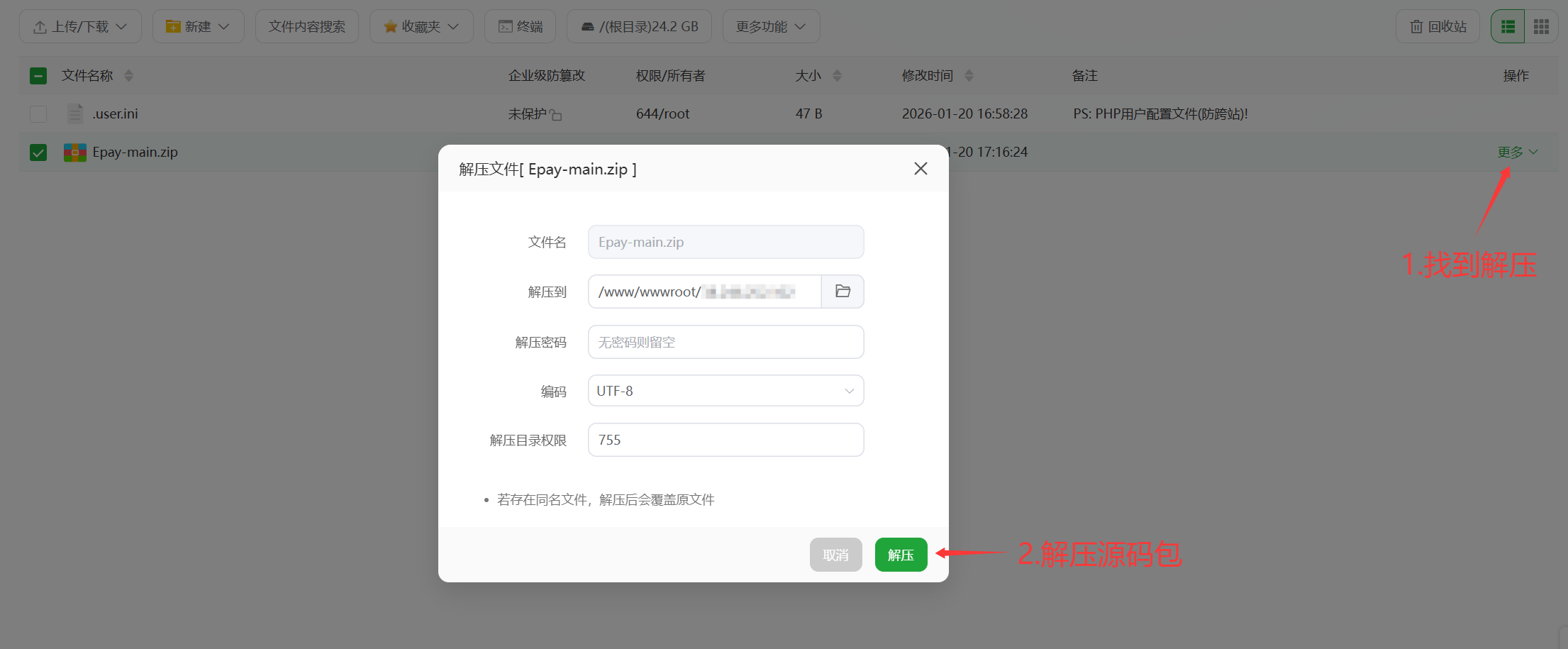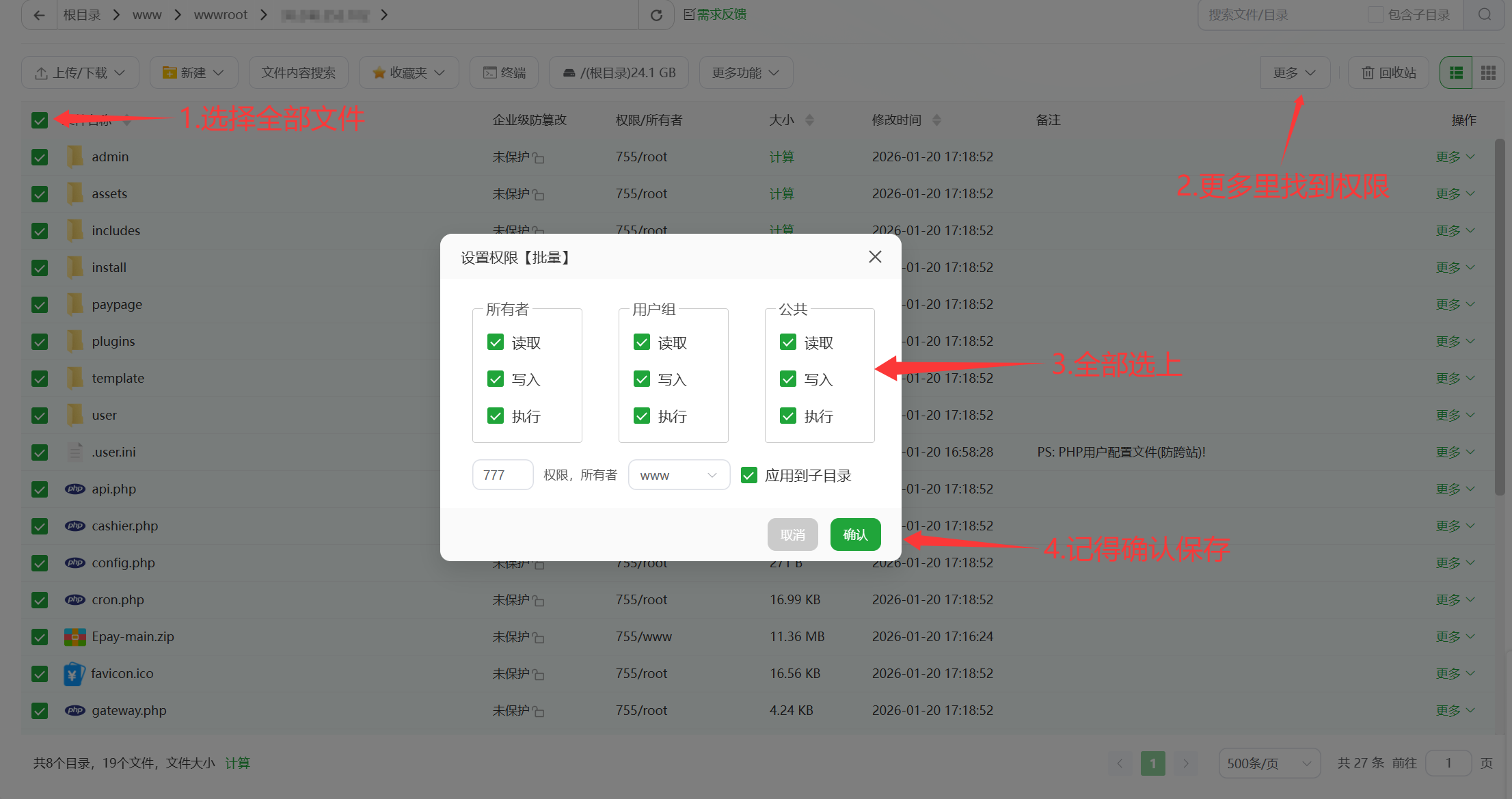 3.解压压缩包并且给与777文件权限