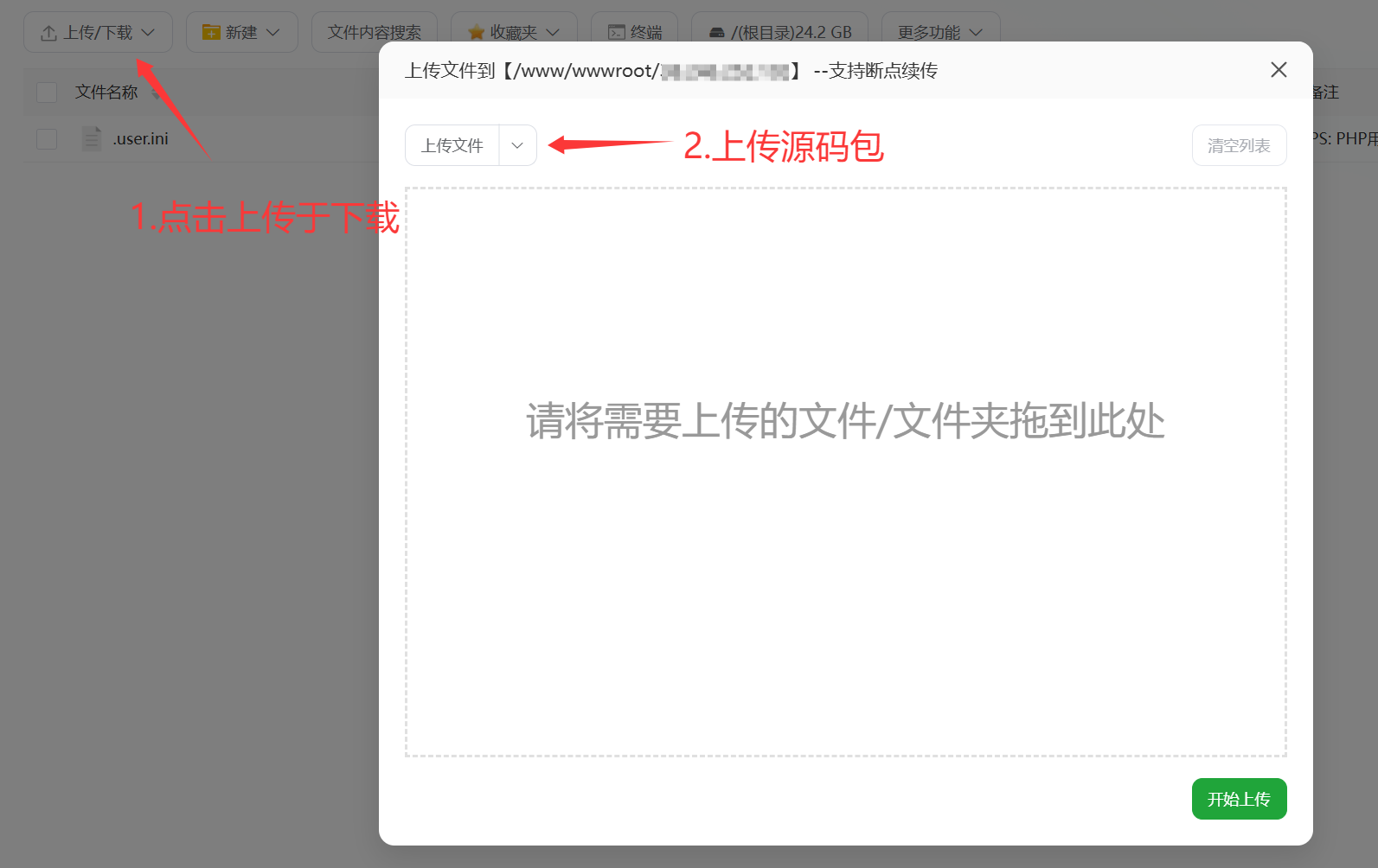 2.在站点目录下删除默认文件后上传第三方支付源码包