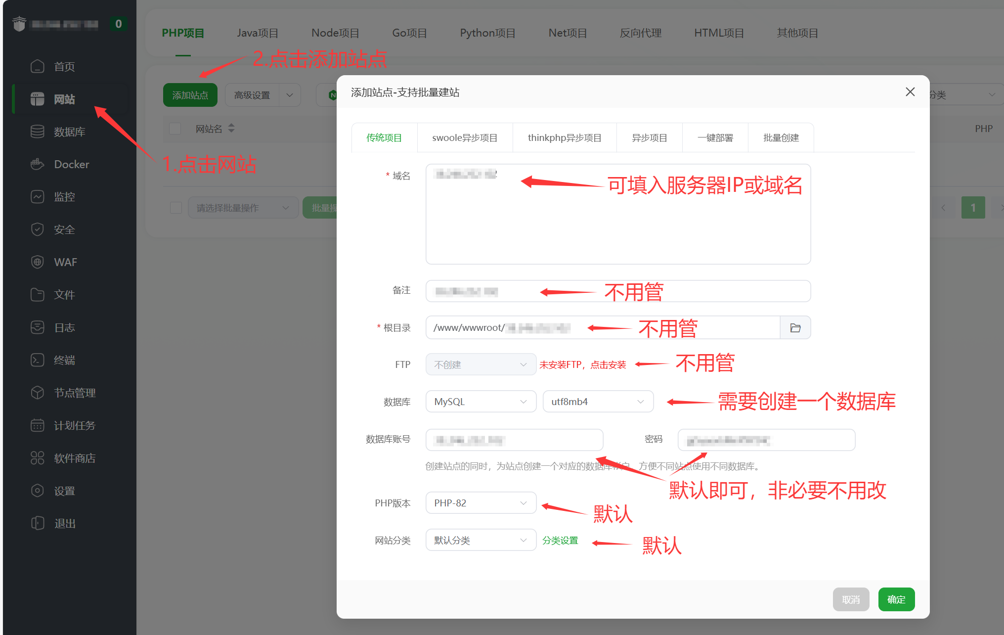 1.在宝塔面板里新创建一个站点