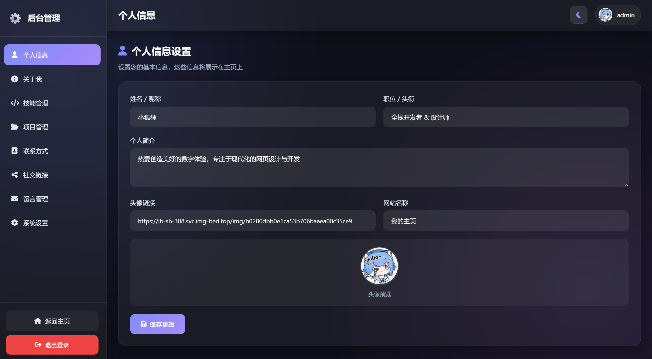于是针对这种情况我手搓了一个带后台还有跑路功能的个人主页