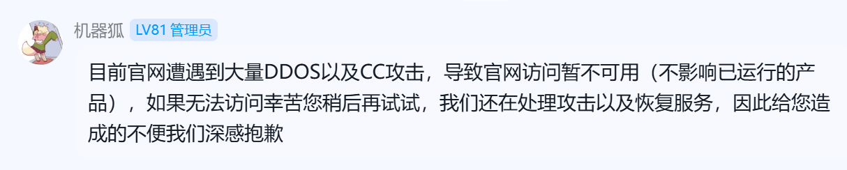 我们发现目前截止到2026年3月20日22:18分雨云主站无法访问,希望能尽快解决
