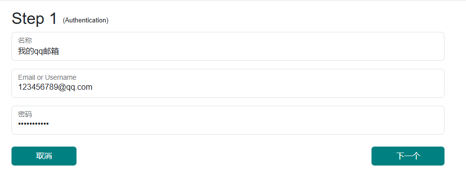 得到授权码之后,回到cypht填写邮箱信息,这里需要的密码就是授权码,填写完成后点击下一步