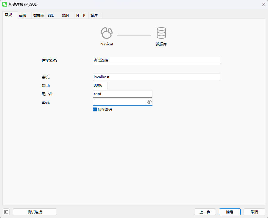点击左下角的测试连接,能连上的话再点击右下角的确定