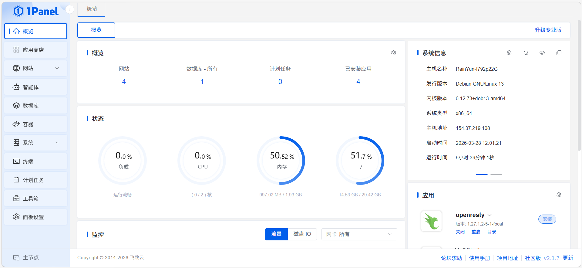 安装结束后,进入面板: