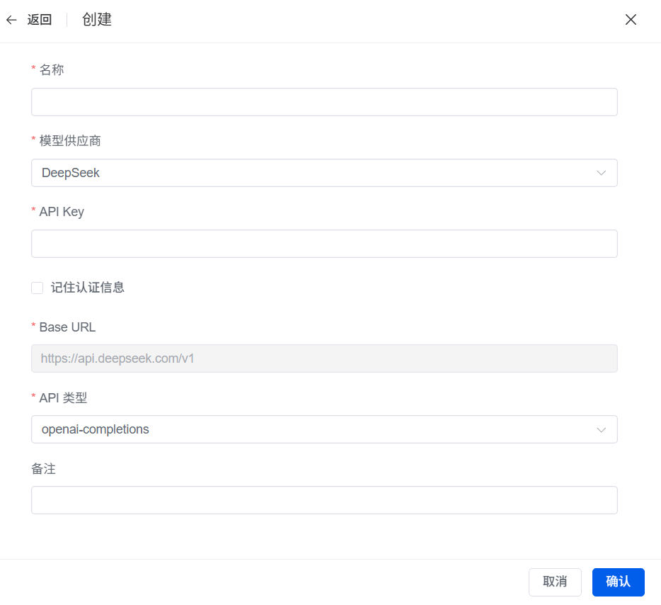 如果你是Deepseek Kimi这样的,直接选择已有的模型供应商,否则就选择自定义。