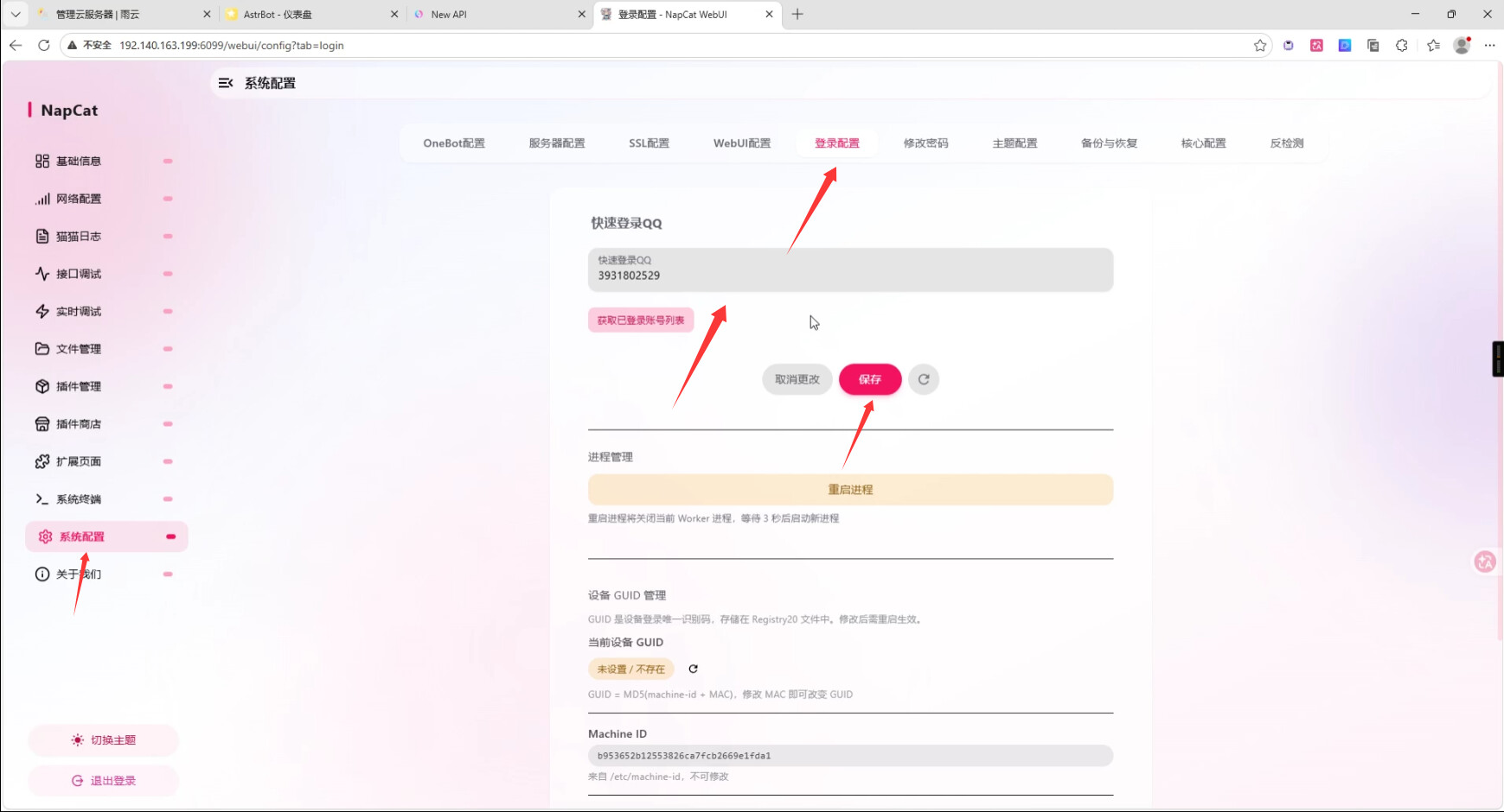 并在系统配置,登录配置,快速登录填写登录的QQ,然后保存