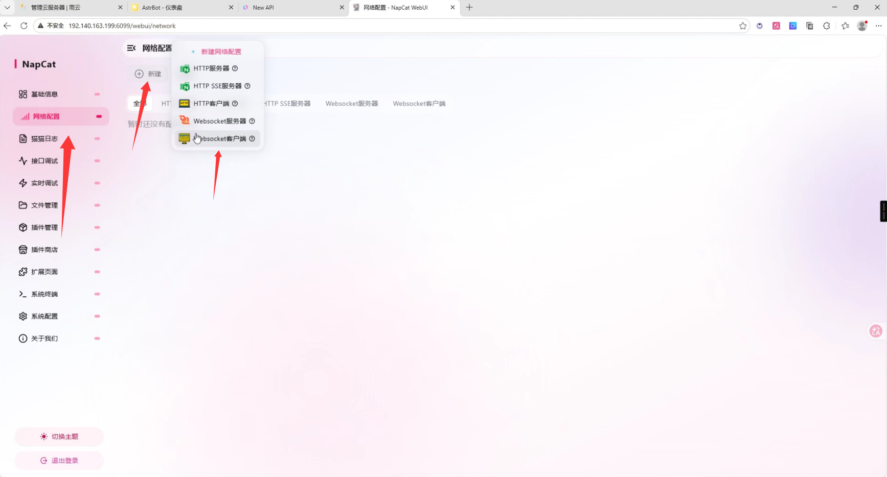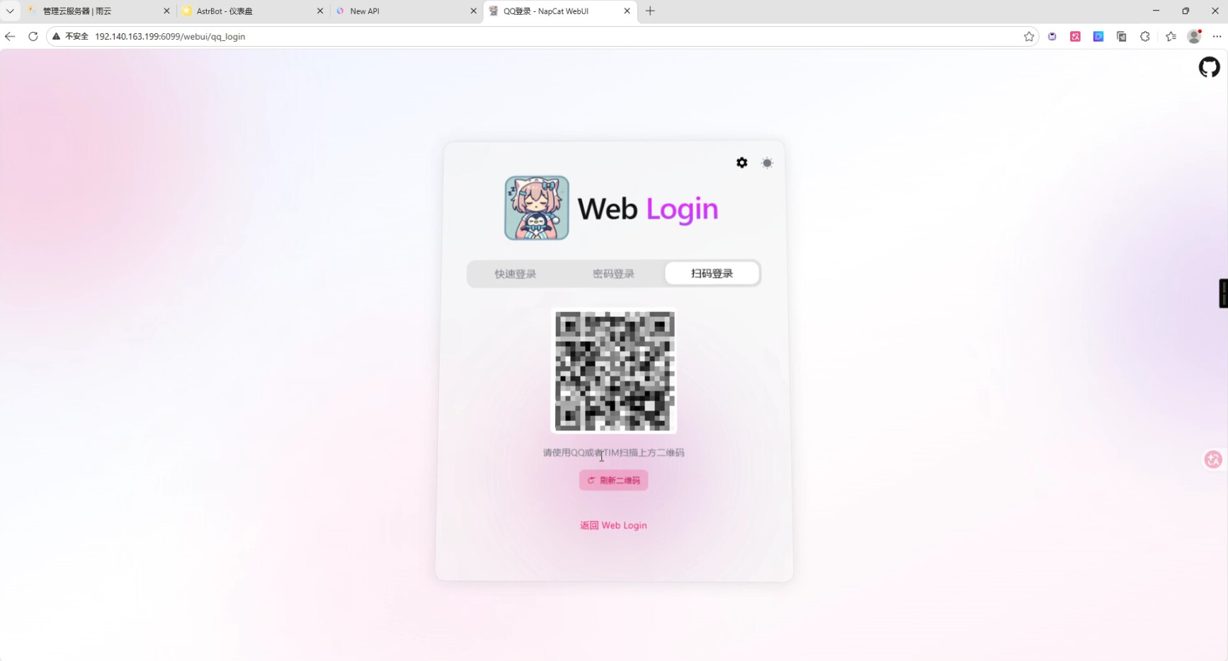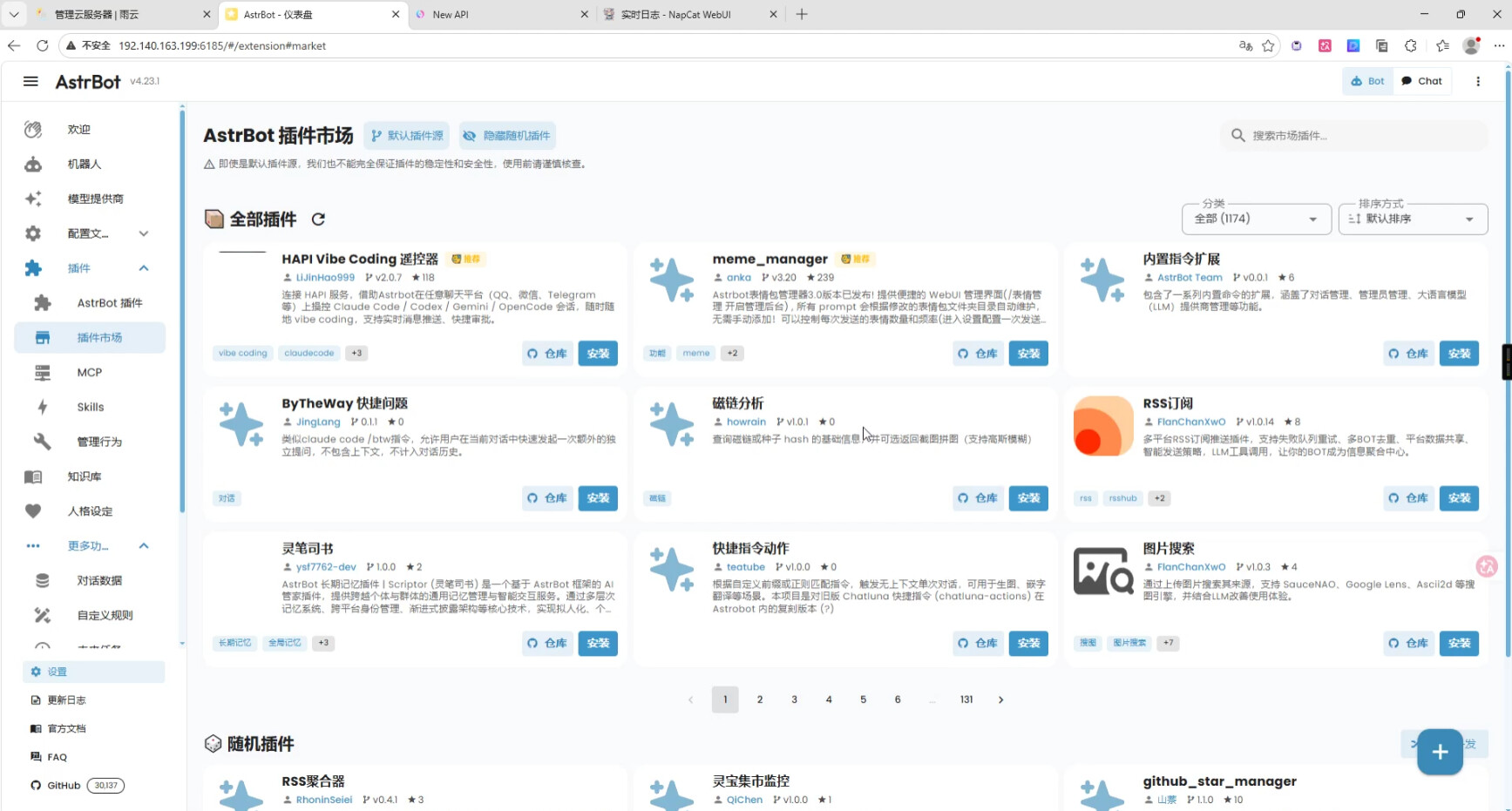 如果忘记预装,可以在控制台安装Astrbot和Napcat