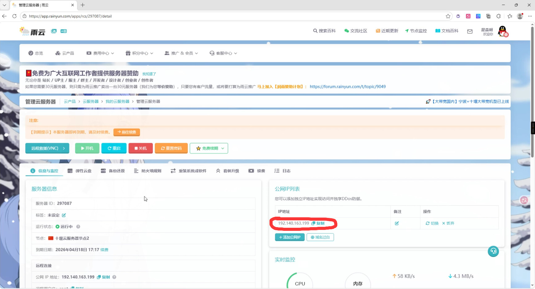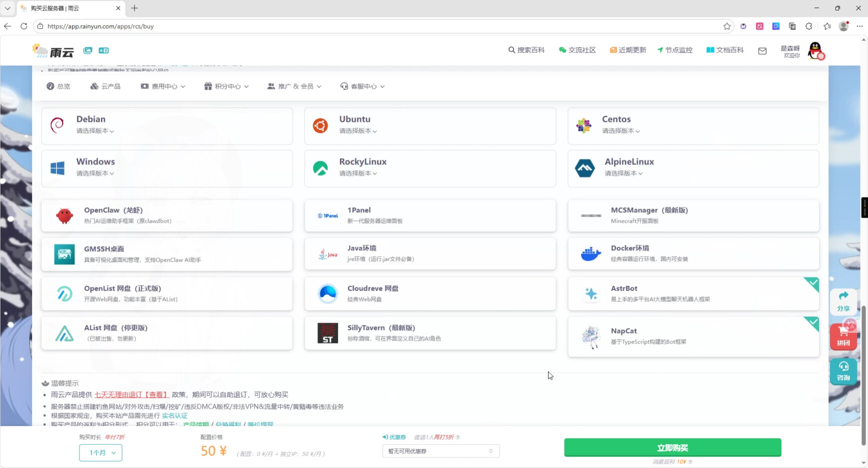 这里推荐雨云的服务器,首次注册5折,还有无限的立减券可以领!