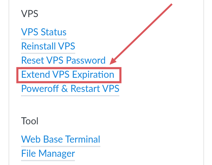 你也可以点击Extend VPS Expiration进入续期页面