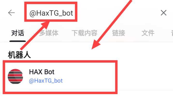 这里需要打开你的Telegram(或第三方客户端),点击顶部搜索@HaxTG_bot