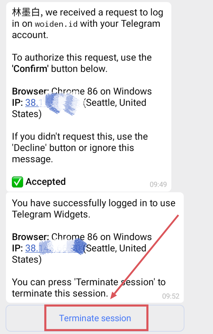 Terminate session,Telegram账号就可以成功授权Woiden了免费创建NAT VPS