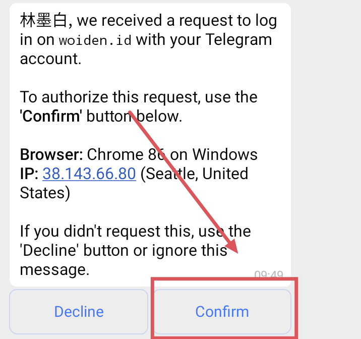 然后Telegram官方会给你发送一条登录验证消息,点击